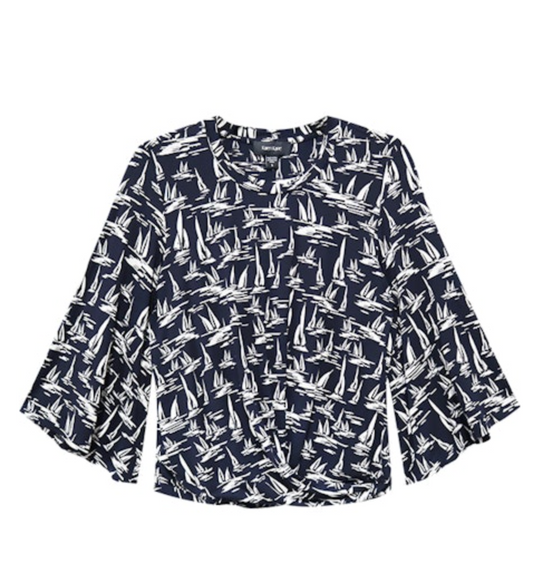 KAREN KANE FLARE SLEEVE DRAPE FRONT TOP