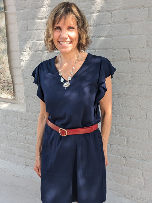 Sold outTWO-TONE EMBROIDERED WOOL BELT