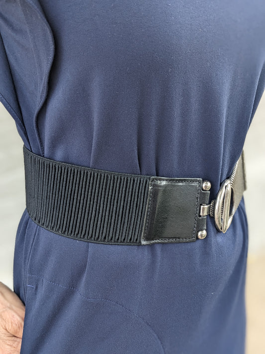 BLACK STRETCH BELT WITH SILVER BUCKLE