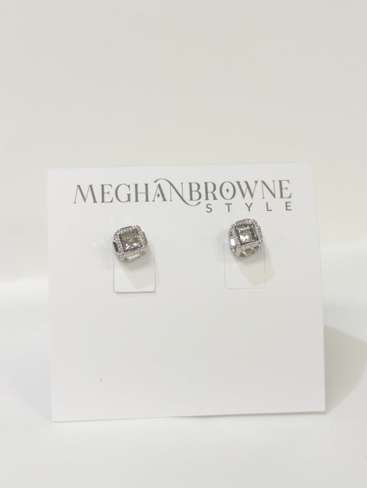 MEGHAN BROWNE SAWYER SILVER CLEAR EARRINGS
