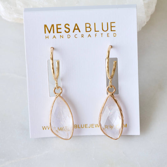 FACETED QUARTZ HOOP DANGLE EARRINGS