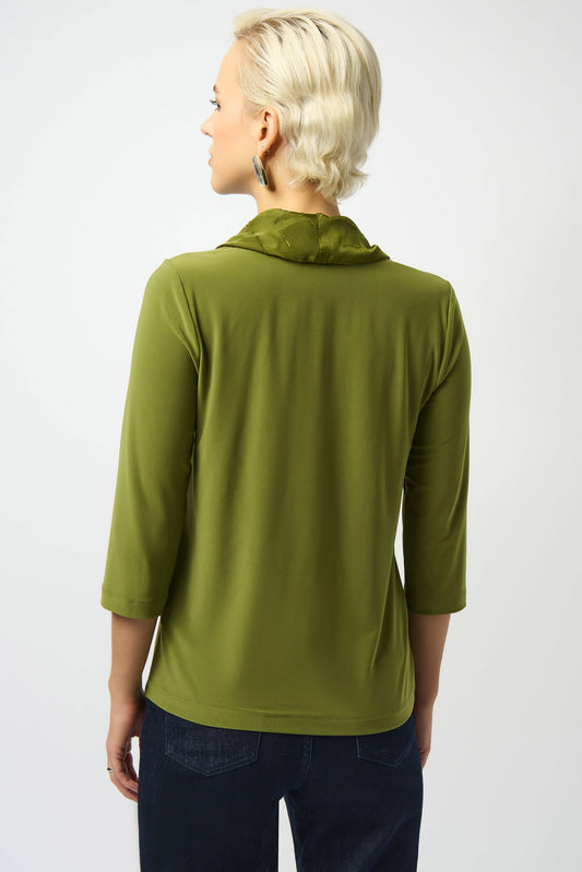JOSEPH RIBKOFF SILKY KNIT & SATIN BURNOUT FITTED TOP