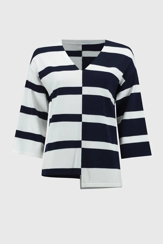 STRIPED SWEATER KNIT V-NECK PULLOVER
