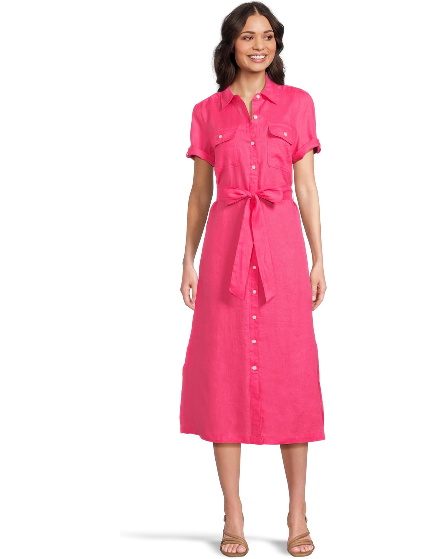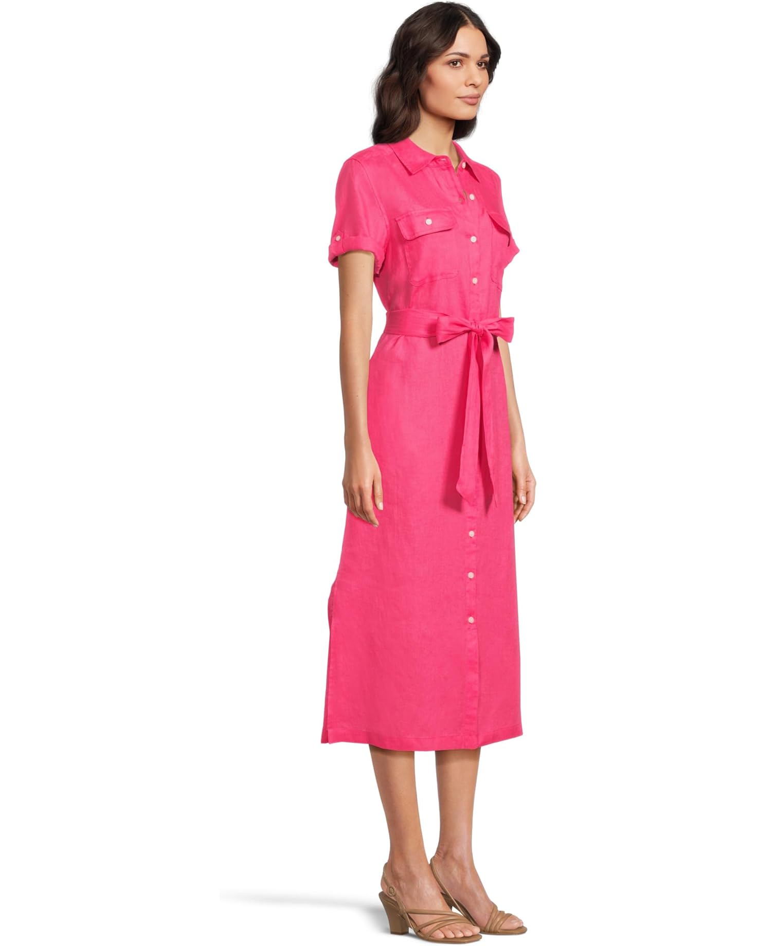 Breeze through the day in effortless island elegance! This Tommy Bahama® Coastalina Short Sleeve Midi Shirtdress is your ultimate go-to for relaxed sophistication. Featuring a crisp collared neck and a breezy mid-calf length, this dress blends tailored charm with casual ease. The button-front closure allows for versatile styling, while chest and side pockets add function to fashion. Cinch the removable self-fabric belt for a defined waist or go without for a laid-back vibe. Whether you're strolling by the shore or heading to brunch, this lightweight staple keeps you polished and comfortable.