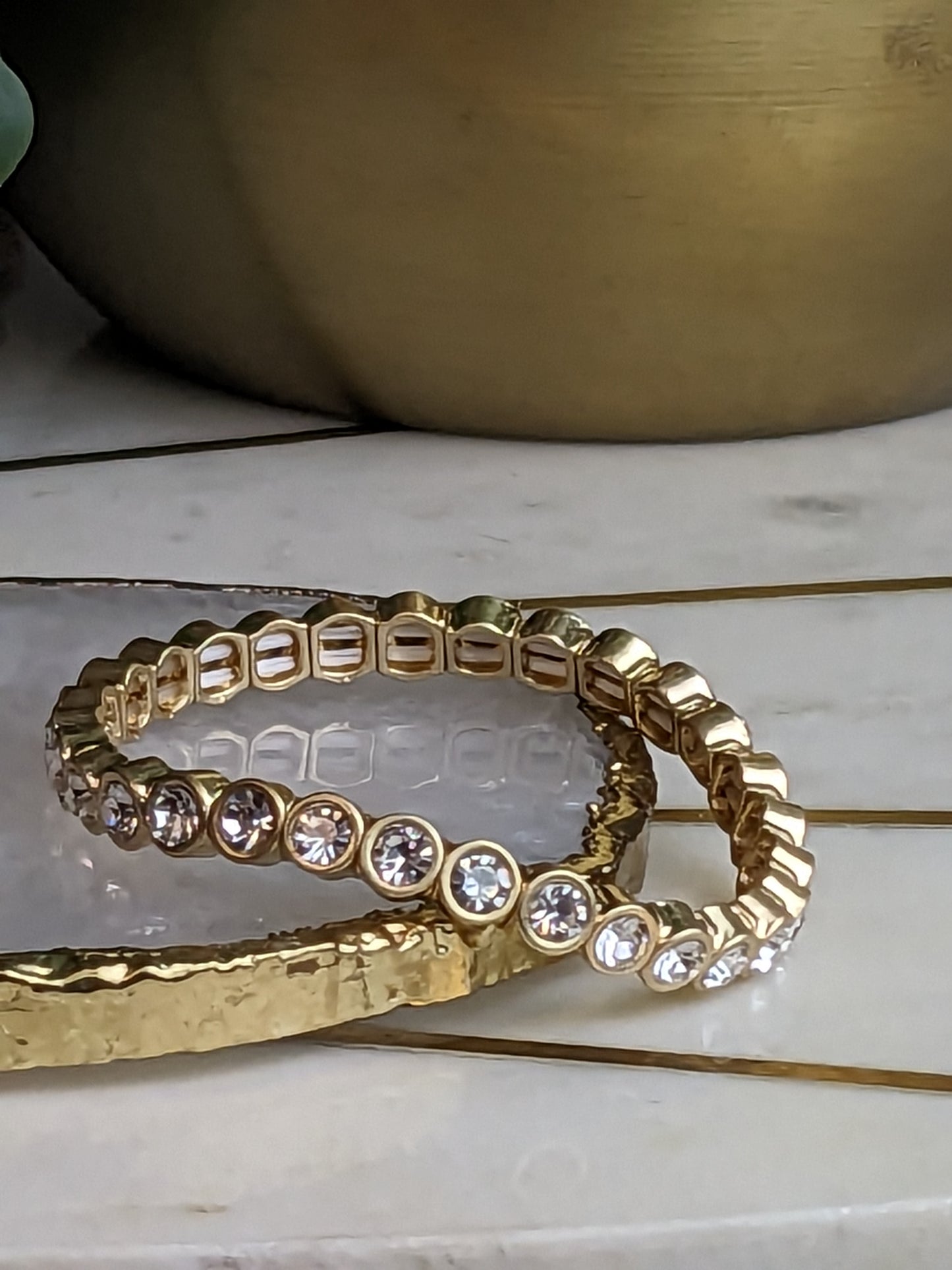 This GABE Gold Bracelet is special - crafted from gold and adorned with shimmering round rhinestones, it adds a dazzling touch to any look. Make a statement with this luxurious and sparkling bracelet!