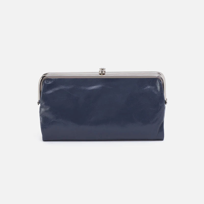 A clutch-wallet with a vintage-inspired frame. Lauren has a double frame design, making it the perfect hold-everything type of wallet and your favorite clutch.