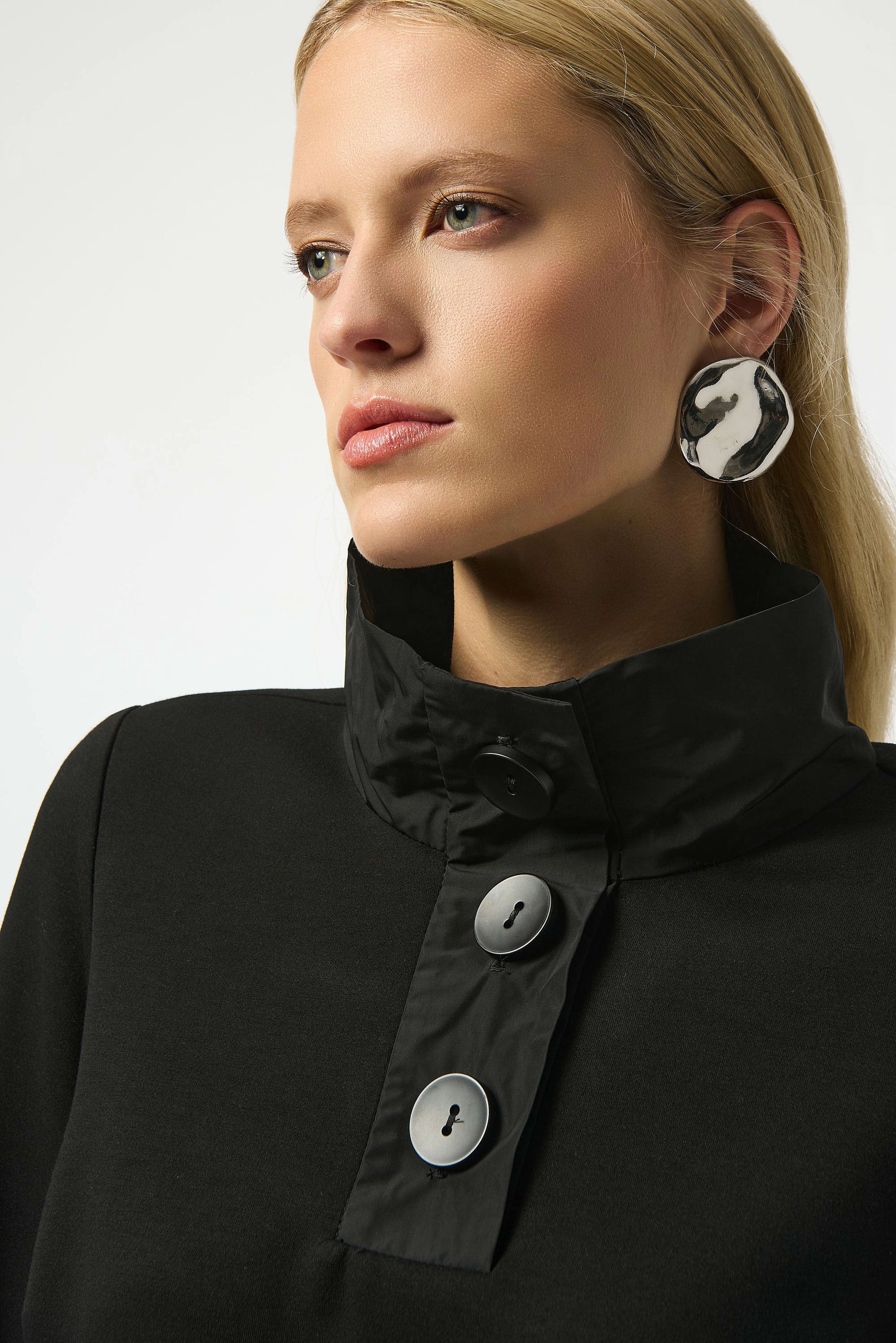 - Funnel collar with placket