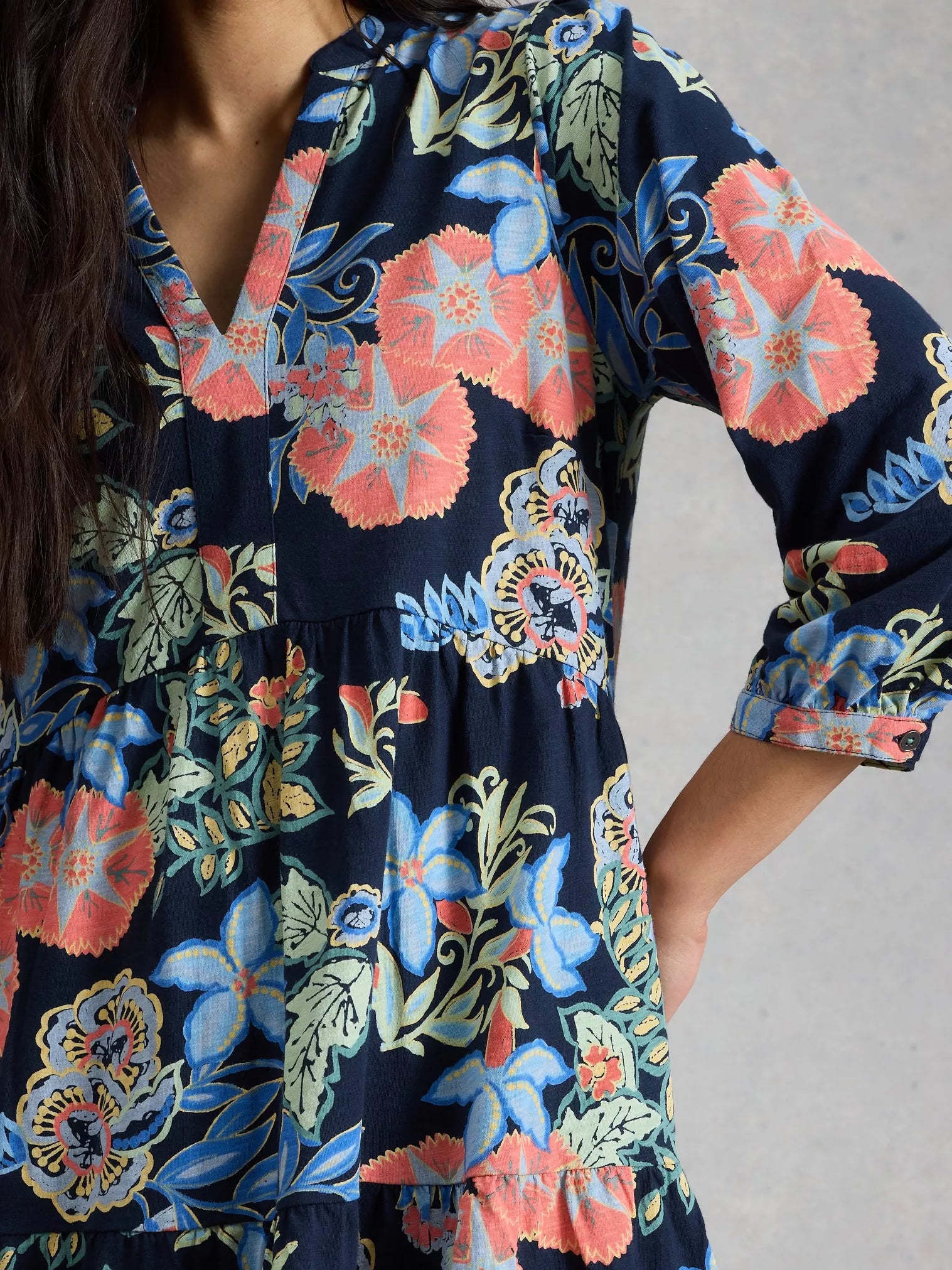 A v-neck tunic with tiered skirting. The soft cotton is just one of the reasons you’ll love wearing this.