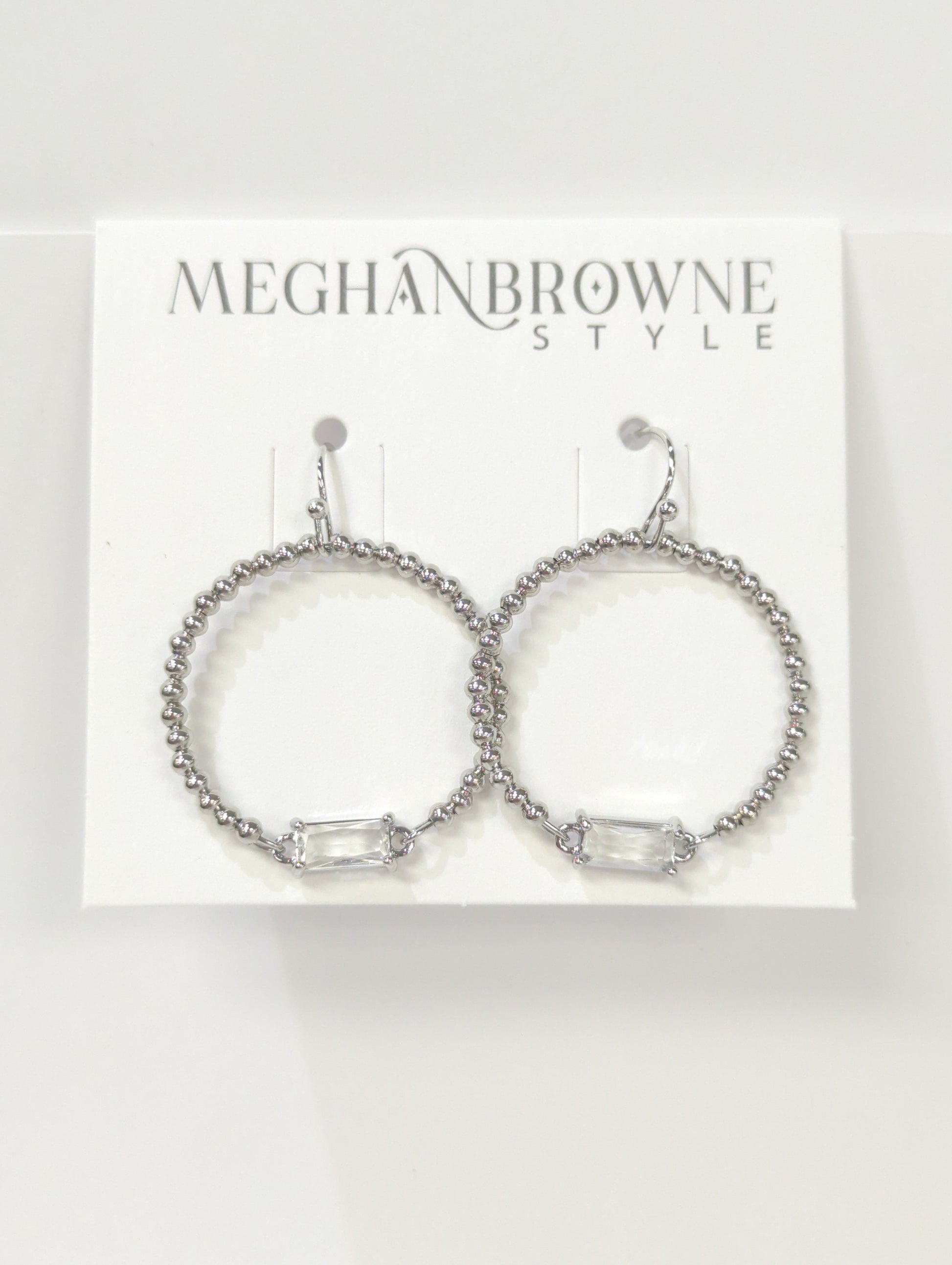 MEGHAN BROWNE SAWYER SILVER CLEAR EARRINGS