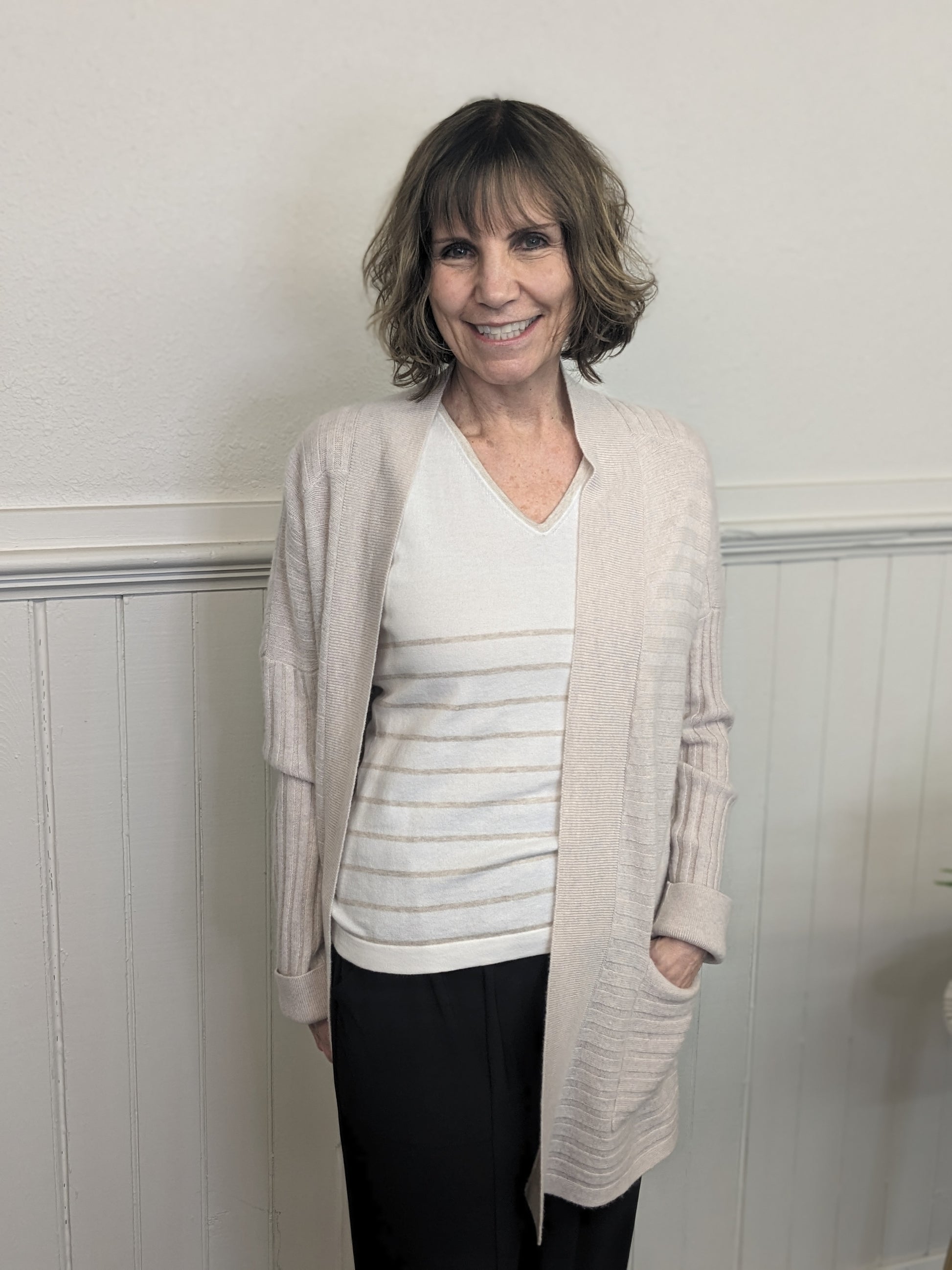 Experience the perfect balance of comfort and style with Kinross' VEE TANK. Crafted with a unique blend of cotton and cashmere, this luxurious tank comes in a white and wicker stripe, making it a versatile choice for any wardrobe. So, why not add a new level of sophistication to your wardrobe today?